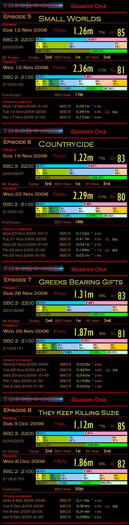 Utöver detta så är Torchwood dåligt skriven, dåligt agerad och i allt för många fall rent irriterande i dess sätt att sjabbla bort vad som kunde vara ett bra avsnitt... men jag har ju inte sett de sista avsnitten så jag kankse blir bländad av dess brillians <_<