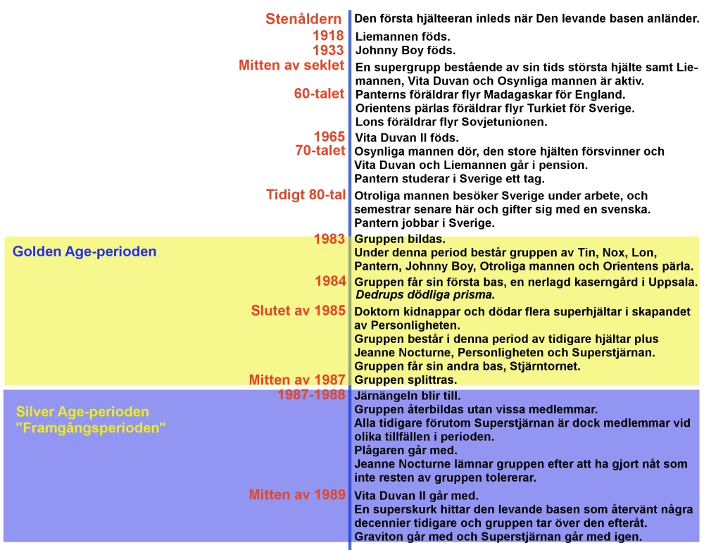 Daniel skriver inte tidslinjen längre vad jag vet. Vilka som finns i vilka eror kan läsas i introduktionen i nummer 8 tror jag också.